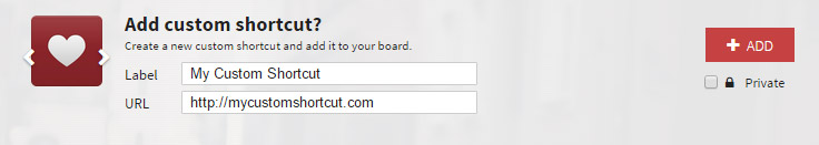 Then write down a label, choose an icon using the arrows next to it, and click on Add. Voila! Shortcut is now on your board.