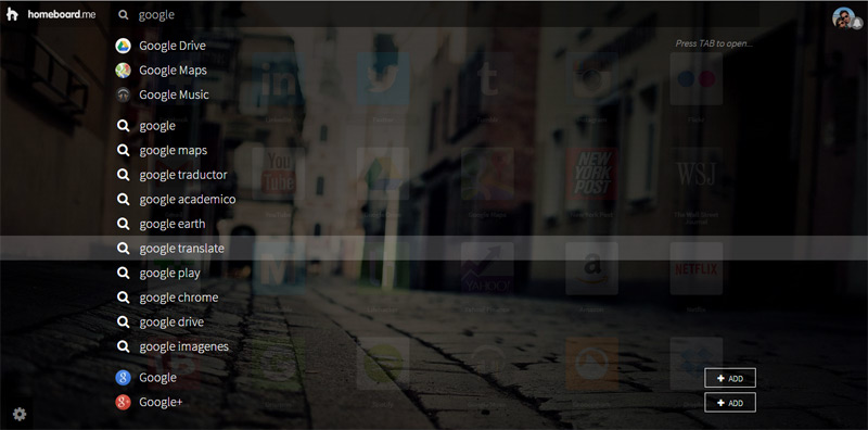 From the web search box, you can search anything you want on the web, quick launch your favorite sites and even add new shortcuts to your board.